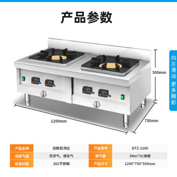 威尔宝wibur 商用燃气灶台天然气大锅灶酒店厨房工厂饭堂煤气灶液化气锅径90cm双头大炒锅 DGZ-90S