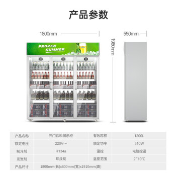 威尔宝WIBUR 冷藏展示柜商用饮料柜三门便利店超市冰柜啤酒冷饮柜冰箱食物留样柜风冷 BGR-L1200FZL铝合金