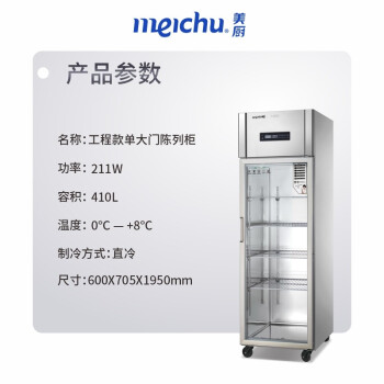 美厨商用双门冷柜不锈钢立式冰箱商用冰柜冷藏保鲜厨房餐厅单门商用冰箱四门立式陈列柜冰柜BS1.0G4