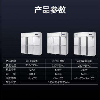威尔宝WIBUR 商用六门冰柜冷藏冷冻保鲜立式冷柜 食堂酒店厨房冰箱商用 六开门冷冻W-G-BGD6 全铜管升级款