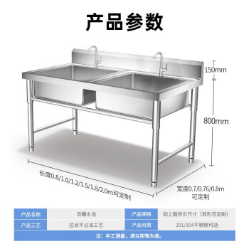 威尔宝wibur 不锈钢水槽商用洗菜盆洗碗池1500*760*800+150mm三星水池304不锈钢 WBG304-15076SX