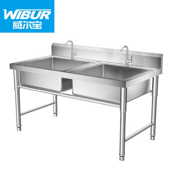 威尔宝wibur 不锈钢水槽商用洗菜盆洗碗池1000*700*800+150mm双星水池304不锈钢 WBG304-1007RX