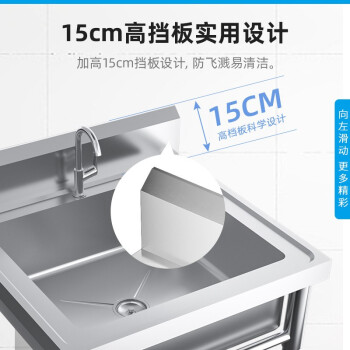 威尔宝wibur 不锈钢水槽商用洗菜盆洗碗池1500*760*800+150mm三星水池304不锈钢 WBG304-15076SX