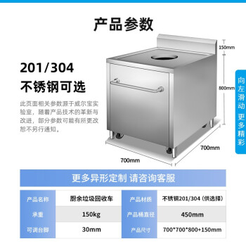 威尔宝wibur 商用洗碗机配套用收污碗碟台1500*760*800mm前端洁碟台 WBG201-15076JDT 工程款201不锈钢